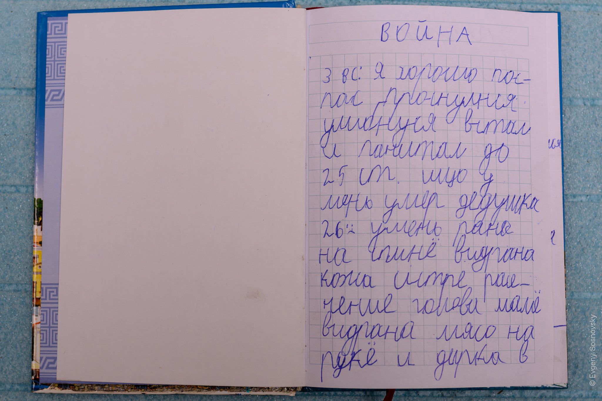 Його історію на брифінгу у Києві розповів фотограф Євген Сосновський, який виклав фото пронизливого дитячого щоденника. Сосновський виявився дядьком мами хлопчика. Про це пише Obozrevatel.
