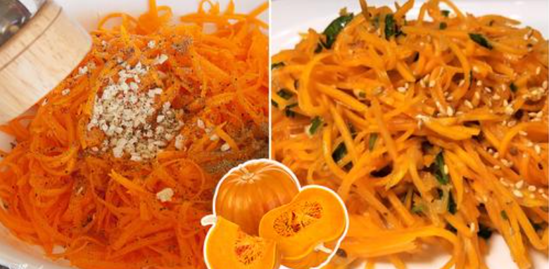 Пропонуємо приготувати салат з гарбуза по-корейськи зі смаженою цибулею та різноманітними приправами.