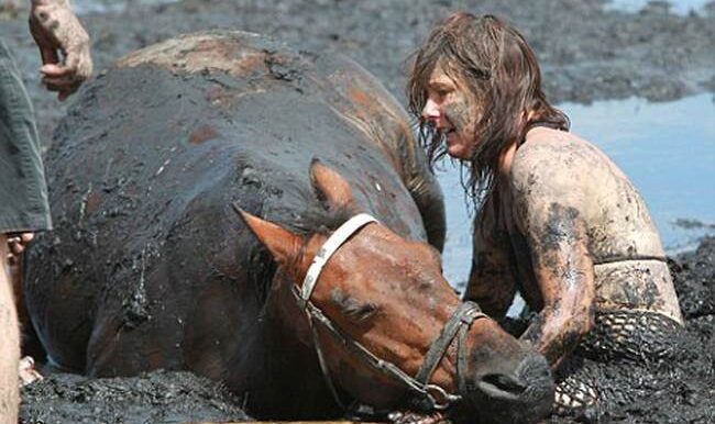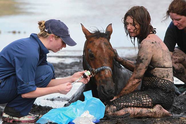 Але вона допомагала, сильно намагаючись врятувати коня. Це тривало до самого вечора.